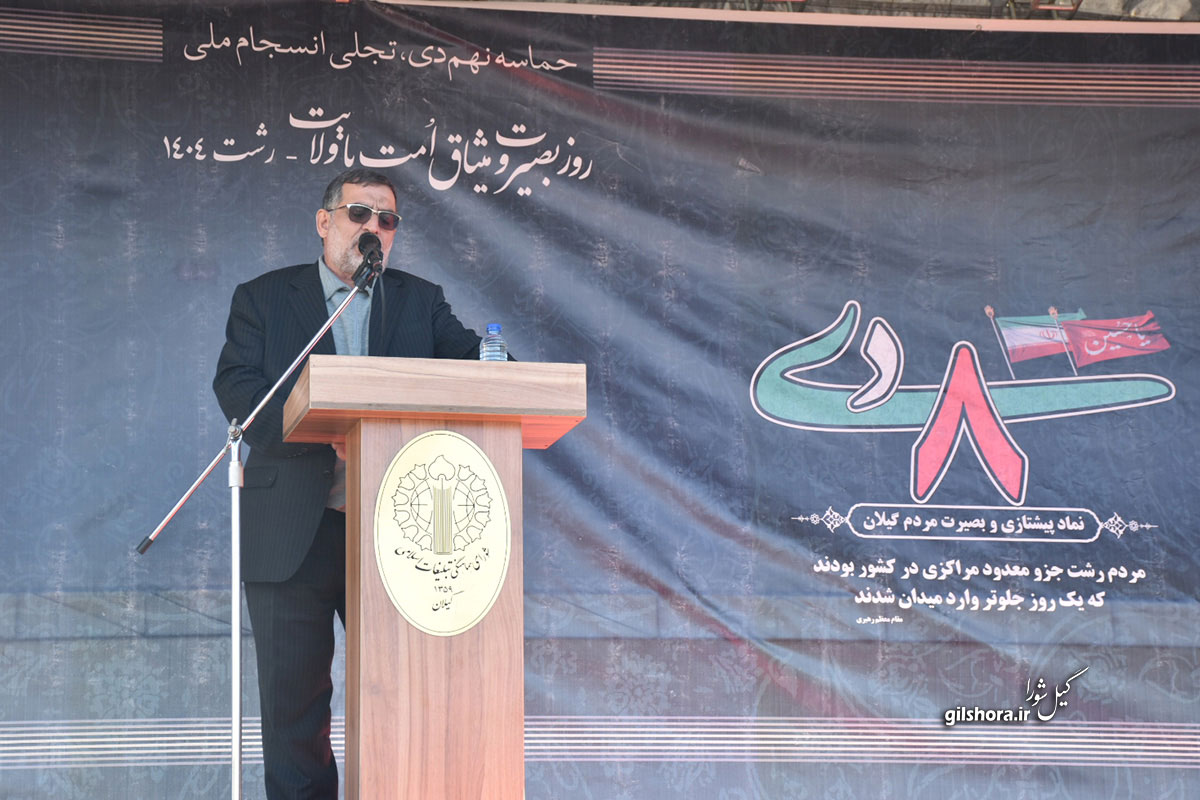 وی با بیان اینکه مردم گیلان به یک نیاز بسیار اساسی کشور در زمان خودش پاسخ دادند، گفت: وقتی حماسه پرشکوه ۸ دی شما گیلانیها رسانهای شد، همه ایران را در ۹ دی برانگیخت و مردم به میدان آمدند. در واقع شما مبدا حرکت شدید و خطر فتنه ۸۸ را در کشور به عنوان خطرناکترین فتنه خنثی کردید. با کار بزرگ شما و چند استان دیگر، خطر فتنه در کشور باور شد و خروش سراسری علیه آن شکل گرفت.