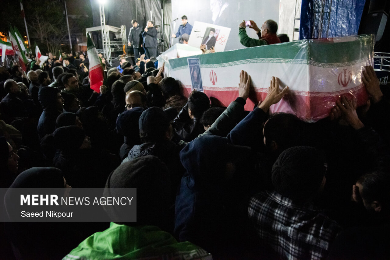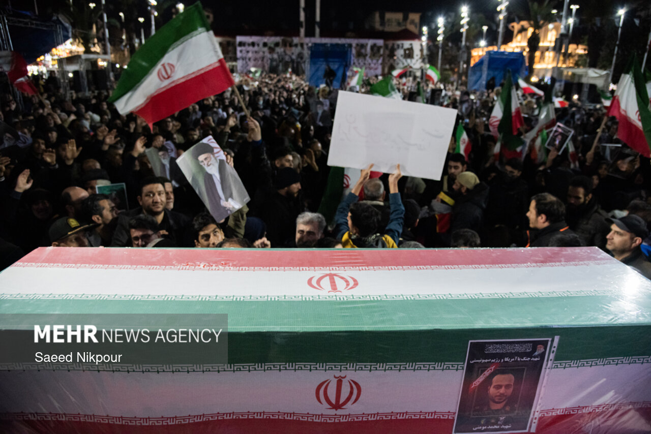 مراسم وداع با پیکر شهدای حملات آمریکایی – صهیونی، شامگاه سهشنبه ۱۲ اسفندماه با حضور گسترده مردم در میدان شهدای ذهاب (میدان شهرداری) رشت برگزار شد.
