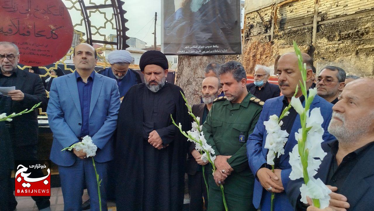 در ادامه مراسم مقتلگاه این شهید بزرگوار توسط مسئولین و مردم شریف این شهرستان گلباران شد .