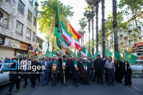مراسم استقبال از کاروان زیر سایه خورشید حامل پرچم متبرکه بارگاه ملکوتی حضرت علی بن موسی الرضا (ع)، با حضور گسترده و پرشور مردم از میدان صیقلان تا حرم مطهر حضرت فاطمه اخری (س)، خواهر آن امام همام برگزار شد.